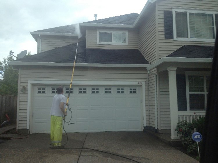 Roof Cleaning with a pressure washer